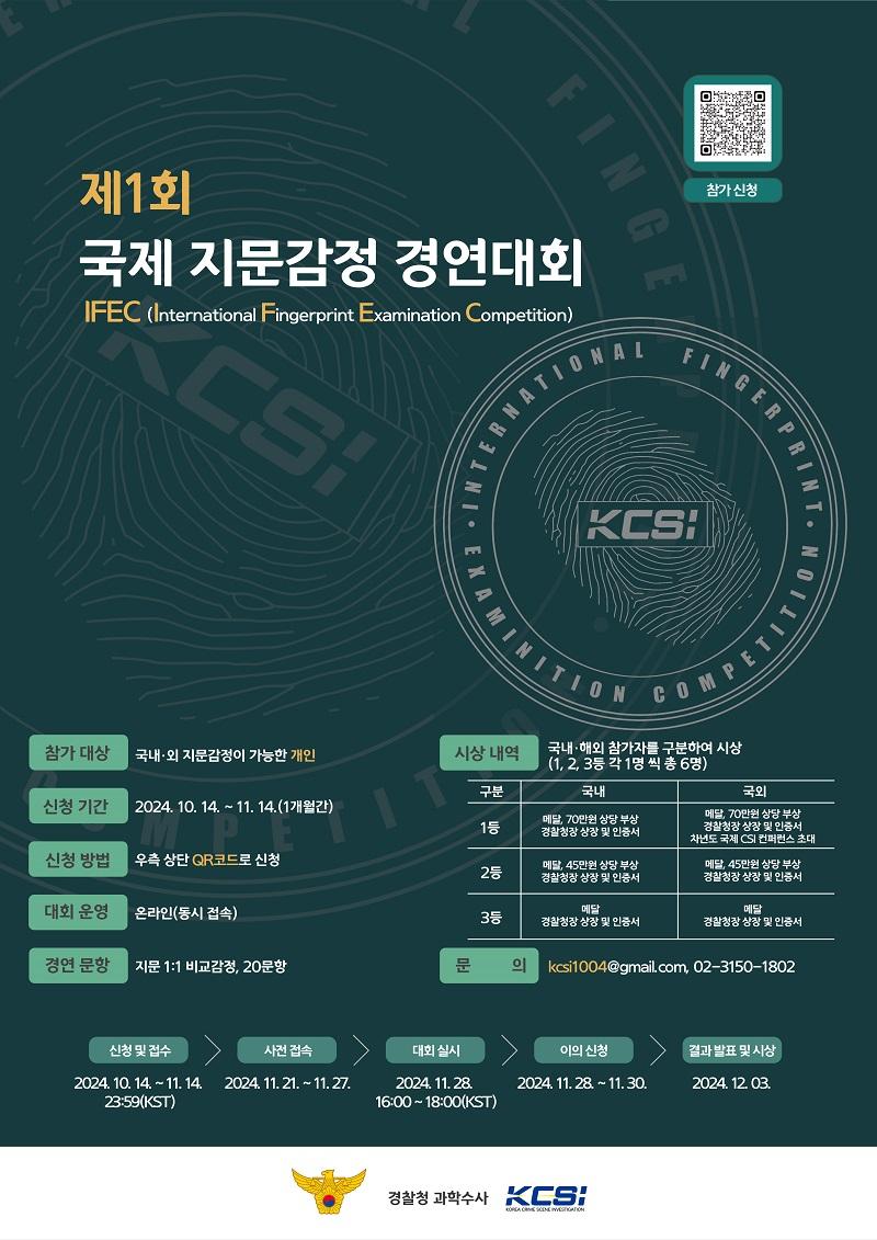 2024년 제1회 국제 지문감정 경연대회가 다음과 같이 진행됩니다. 많은 관심과 참여 바랍니다. 감사합니다. |
